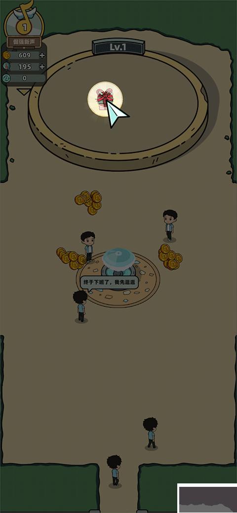 资金不足时,点击广场喷泉可以随机获得金币补给