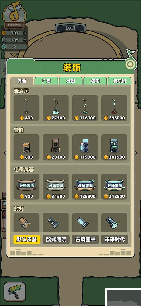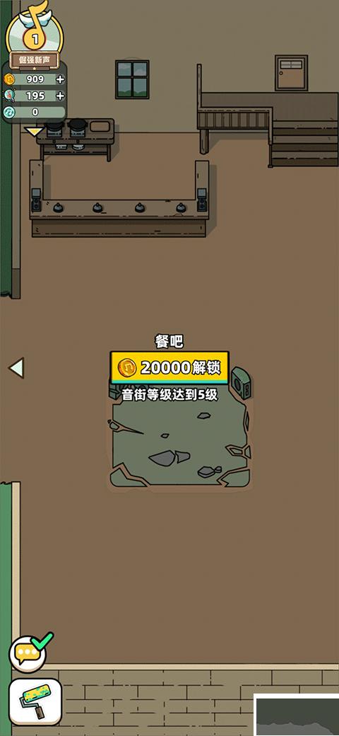 随着等级提升,可花费金币解锁新场景,逐步扩大音乐街区的经营范围