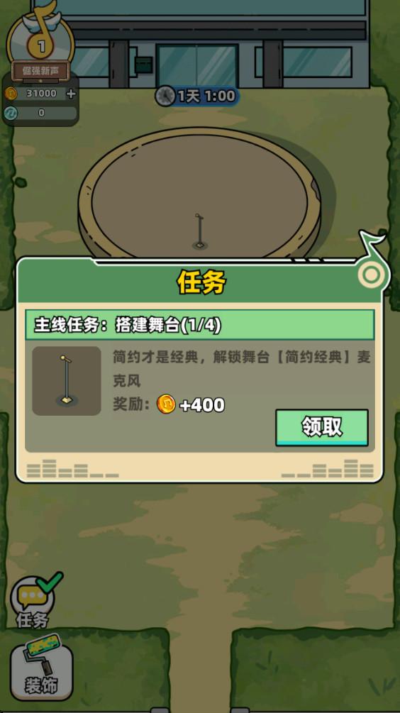 进入游戏后,首先需要清理广场区域并完成舞台建设,为后续演出做好准备。