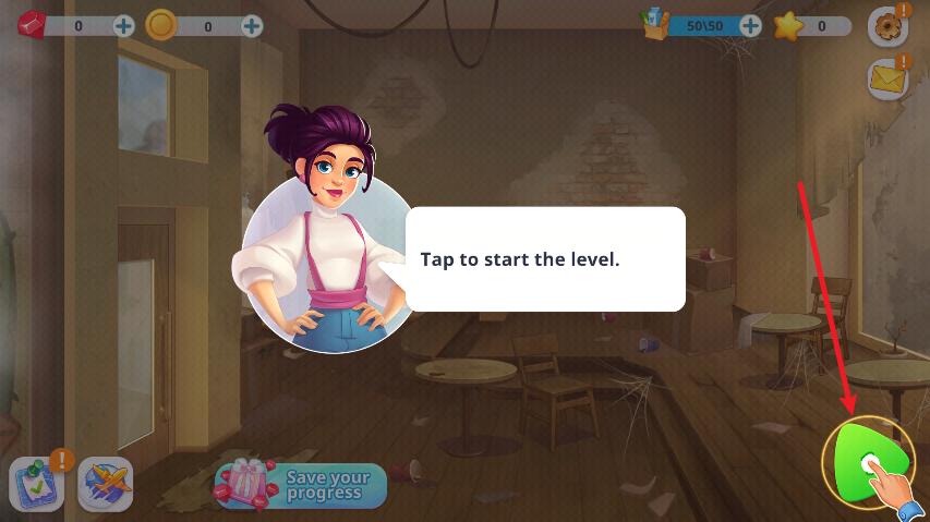 1、玩家进入游戏后首先点击右下角的绿色按钮选择关卡。