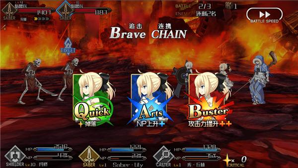 因此在大部分情况下选择能够触发连锁的指令卡组合都会取得事半功倍的效果,另外值得注意的是当指令卡发动过程中目标敌方单位死亡时,后续属于其他从者的指令卡将会将目标锁定为最前方的敌方单位来发动剩下的指令卡,因此如何安排指令卡顺序最大化地打出更多的有效伤害也需要各位玩家在战斗中不断总结经验。