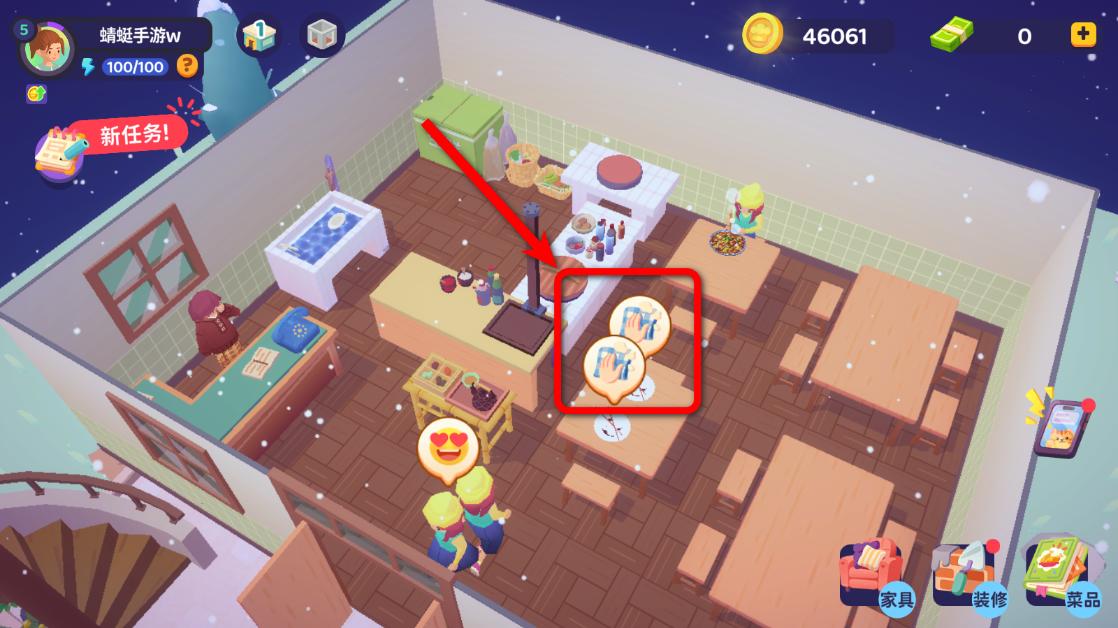 4.清理:在客人走后桌面上会出现清扫气泡,清扫好桌子下一位客人才会来,所以一定要记得及时清理。