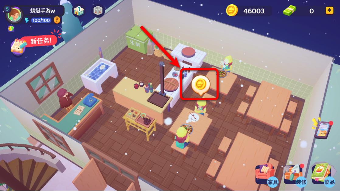 3.收钱:客人吃完饭头顶同样会弹出收银气泡,点击即可收银成功,沉甸甸的金币就到账啦。