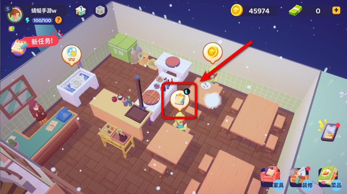 1.点单:客人到店坐下后,头顶会出现点单气泡,点击气泡即可成功点单。