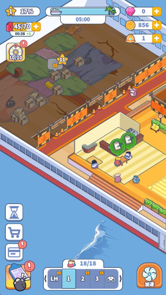 大家快上船是一款让你成为河马船长带领一群萌到炸裂的河马船员开着豪华游轮在大海上浪的模拟经营游戏,你可以自由装饰船舱,让它既有品位又充满趣味,招募各种有趣的河马船员,每个河马都有自己独特的技能和性格,有的擅长厨艺,有的能让娱乐设施爆满,而你需要聪明地安排他们的工作,让整个游轮运转如飞。