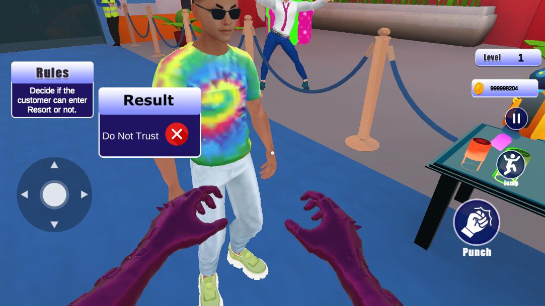 保安模拟器是一款模拟类游戏,玩家扮演一名保安,负责维护安全和秩序,筛选进入场所的客人并确保场所的安全,玩家需要通过观察客人外貌、证件、着装等方面,判断是否符合进入条件。可能会遇到虚假证件或者伪装的情况,需要仔细辨别。
