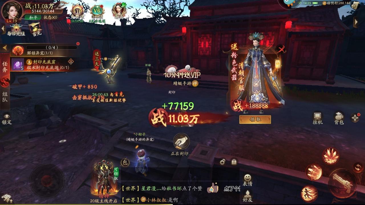 每天都有2次免费机会哦,记得要穿戴上【白无常】(有经验加持),还有【经验药水】和鼓舞也是必不可少的!