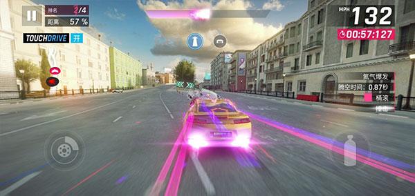 点击氮气按钮,将会激活氮气,车辆的速度将会在短时间内大量提升。氮气激活一共拥有四种状态,分别为单喷、双喷、完美氮气和氮气爆发,至于什么时候激活何种氮气,还需要玩家多多探索。