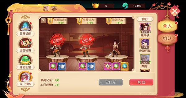 经验仙宫可以获得大量经验,首次通关固定层级之后还可以领取奖励礼包。
