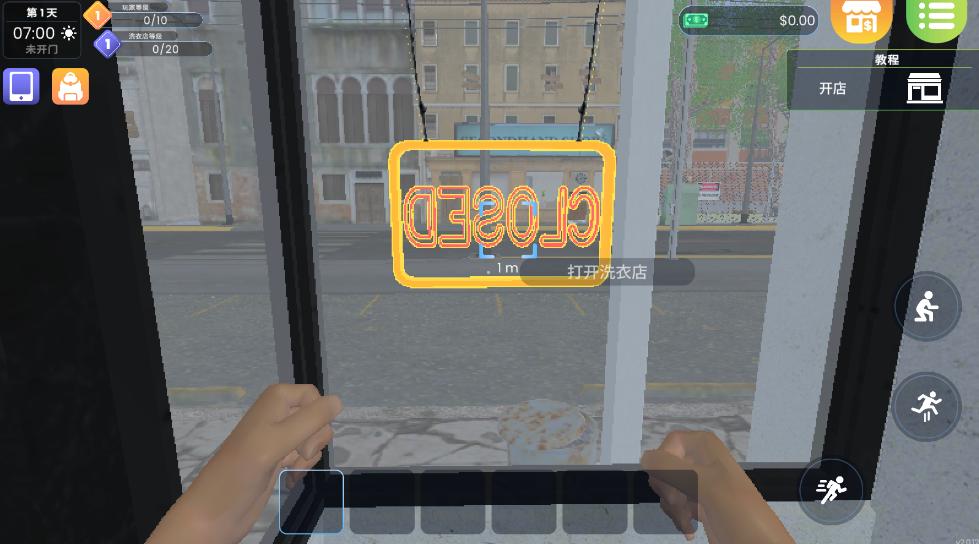 9.我们将视角对着这个CLOSE的牌子,然后点击打开洗衣店