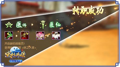 转职成功后,角色的外观、技能、装备也会随之改变,真正的江湖职业2.0时代由此开始。更逆天的战斗力、更眼花缭乱的招式、更赏心悦目的颜值,总而言之,转职系统绝对不会让客官们失望。而且“升职”到这一步,距离称霸武林的梦想也就不远啦!