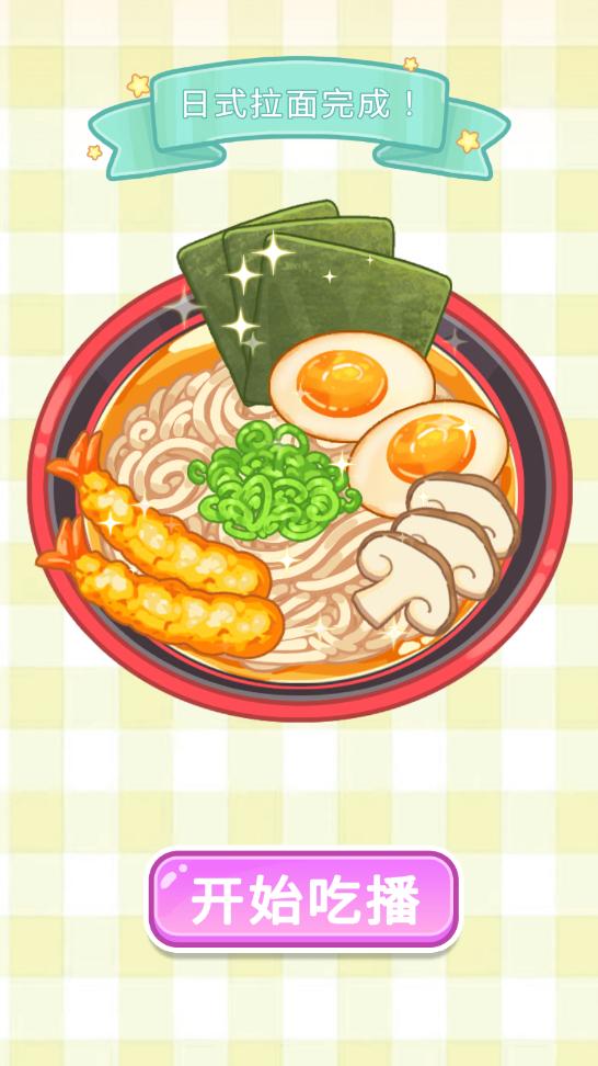 12.然后一碗日式拉面就做好了,点击下方的开始吃播
