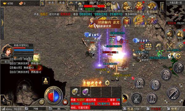 重生传奇手游完美还原了端游传奇的经典玩法,以复古传奇为蓝本,拥有超级变态的爆率设定,1000%加速,1500%爆率,刀刀烈火,刀刀光柱,3分钟挂出50W元宝!小怪也能满屏光柱,这游戏真的可以打金!