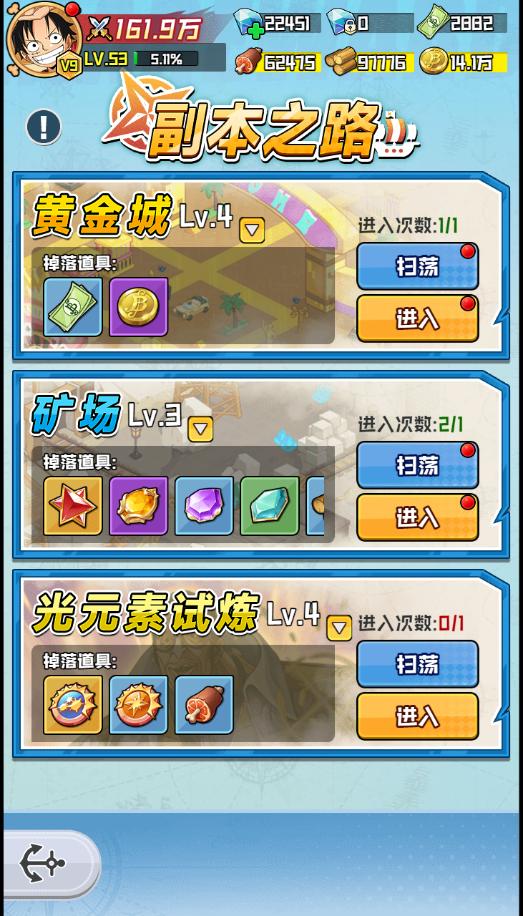船长只要在每个阶段完成相应任务即可升级下一目标,而且船长们的称号也是出现发生变化的,当你从一个寂寂无名的普通船员晋升到在大世界时代人人所熟知的时候,你会发现这就是“ONE PIECE”