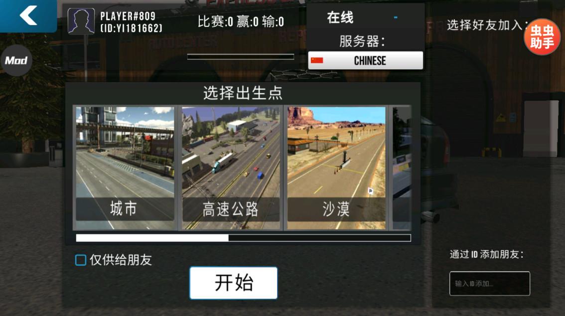 进入到这个画面以后大家可以在截图的上方“ADD Friends By ID”那一栏输入好友的id账号来添加好友,添加好友以后就会在右边的好友列表里面显示出来。