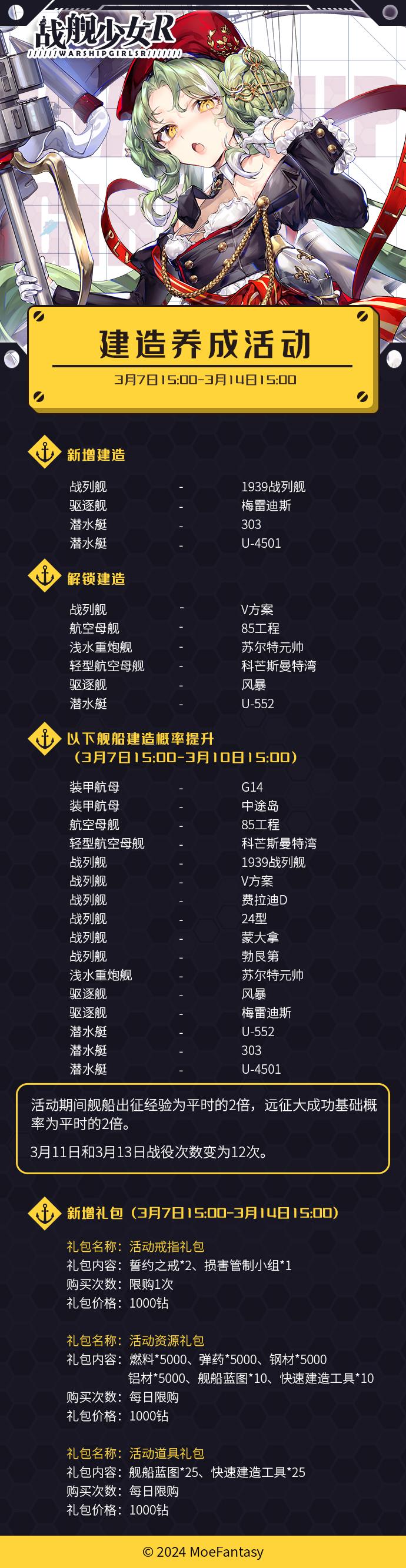 同时,我们将于3月7日15:00 - 3月14日15:00开启新的建造养成活动