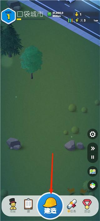 1、进入游戏,点击左下角的建造,就可以开始建造房屋了