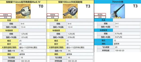 76火炮(右一),通常弹,射速最快的主炮,几乎没有炮击输出,用于主炮占比非常少的驱逐舰。