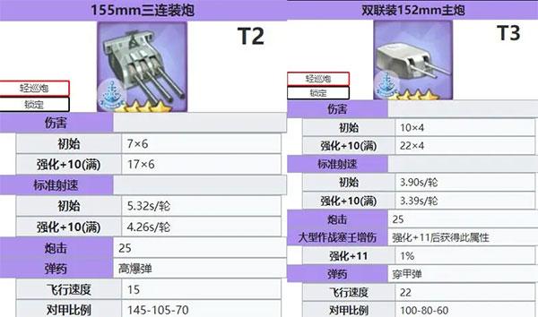 在轻巡中也有主炮能同时装备驱逐炮和轻巡炮的舰船,如亚特兰大级或戴朵级等,建议选取驱逐主炮。五十铃防空时建议用金秋月。