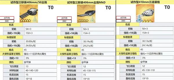 三联406mkd(左二),装备研发制造,对重甲补正较高的出云炮,香槟炮的下位。