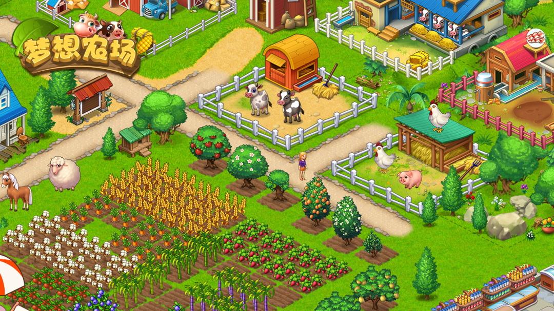 梦想农场是一款农场经营模拟游戏,玩家可以在这里成为农场的主人,您可以饲养各种动物,比如奶牛、鸡、羊和猪等等,还能够种植各种蔬菜水果作物,完成各种订单来建造您的农场小镇,让农场有更多的商业设施,这样您的农场才会越来越繁华。