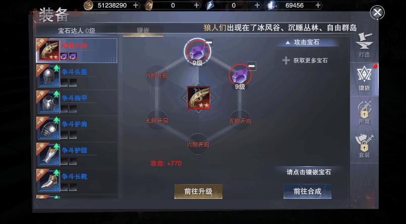 4.宝石战斗力:这个宝石有点难以获取,需求量较高需要氪金解决。
