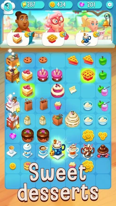 爱与馅饼合并游戏已经破解成了无条件使用钻石且反加,这是一款经营合成游戏,玩家需要通过合成的方式来得到许多的美食,制作顾客喜欢的美食来获得收益,装饰翻新这家咖啡馆,有趣动人的剧情会吸引您前进下去,经营好这家充满爱的咖啡馆;