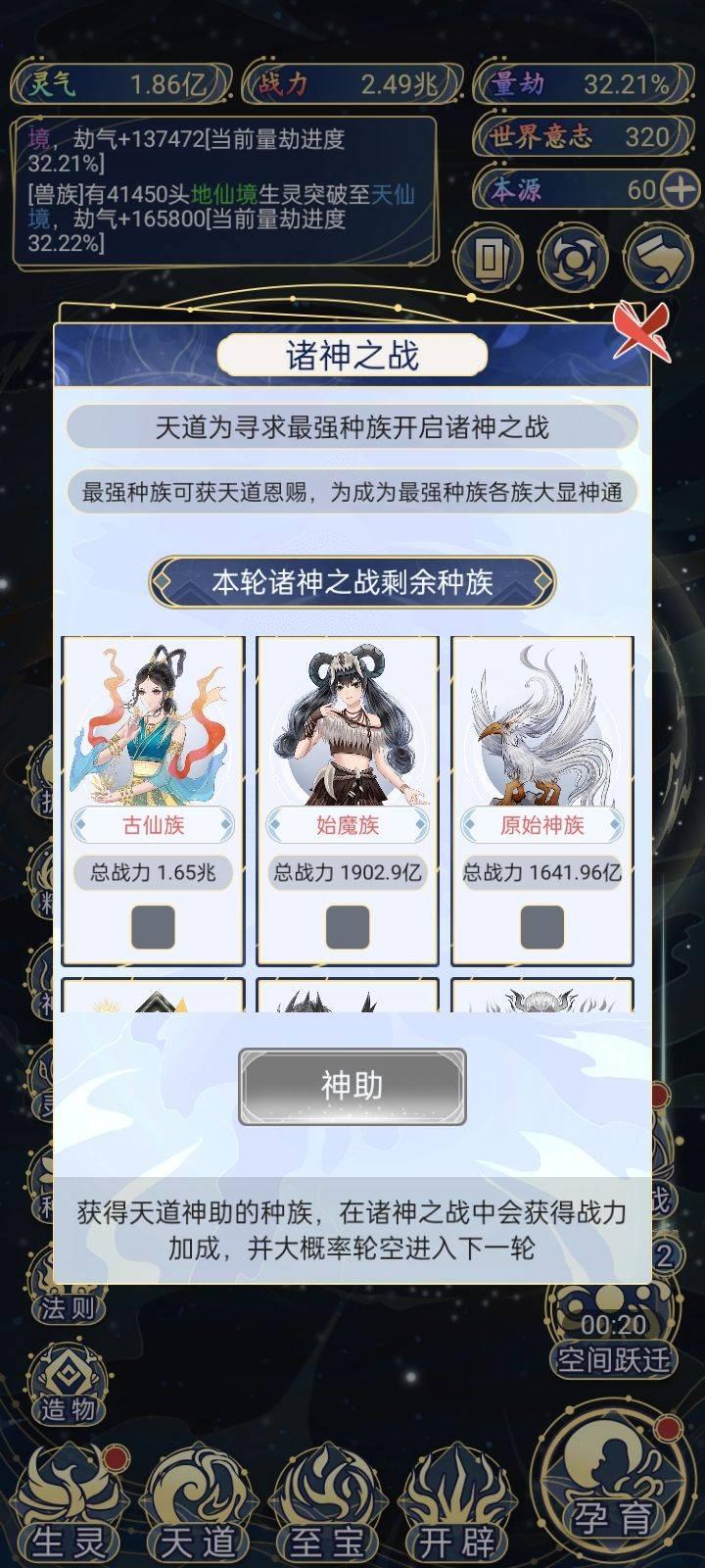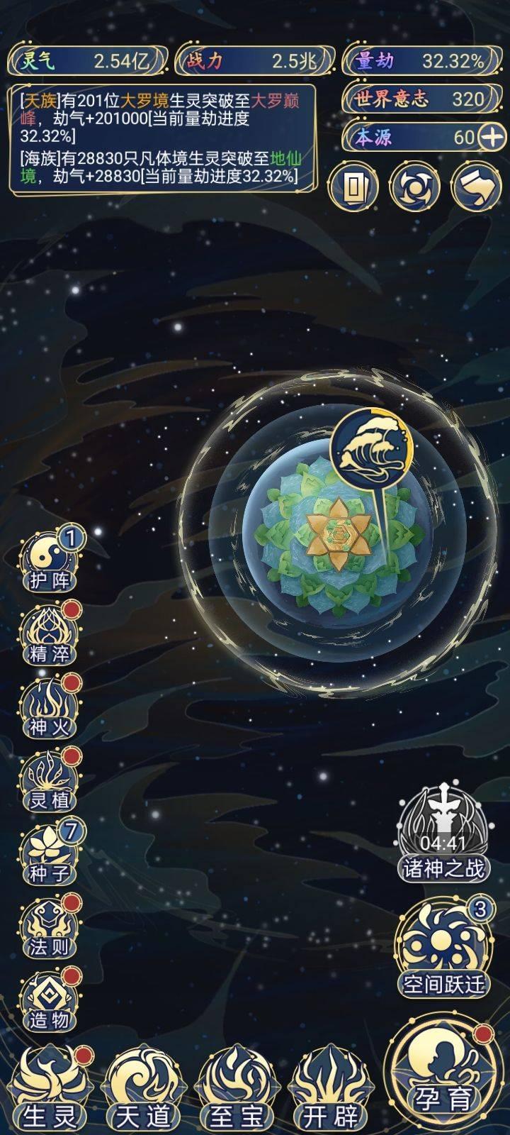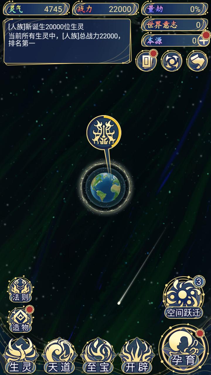 通过建立和升级各种法则,以及修复空间裂痕和建设护阵来使得世界的发展更加稳定,同时还能通过投放稀有神物等操作引起生灵种族之间的争夺,形成合理的良性竞争以便在某些阶段能更快地成长。
