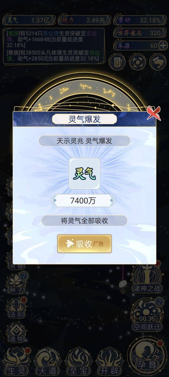 不过不实用,可以通过更改手机时间重置空间跃进CD,灵气增长速度不慢,不用看广告