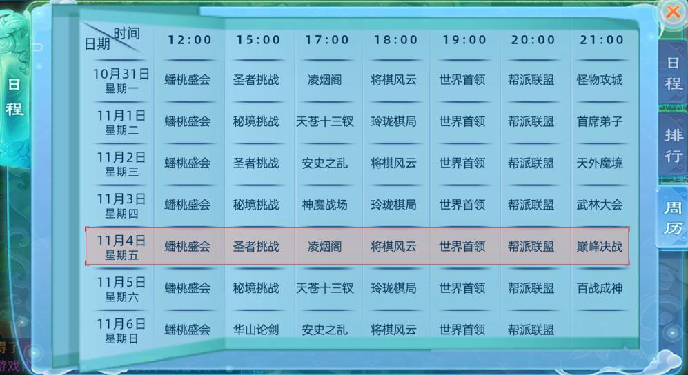 具体的活动内容仙友可以点击【日程】-【周历】进行查看哦
