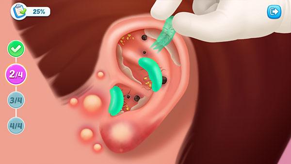 6、一系列操作结束后,耳朵就清理干净了,下面可以解锁医院的新区域了。