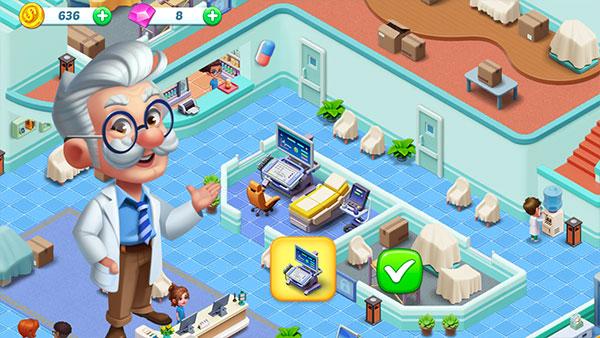 在这里你可以通过治疗病人、发展更多的医院、建立完整的医疗中心来赚钱。