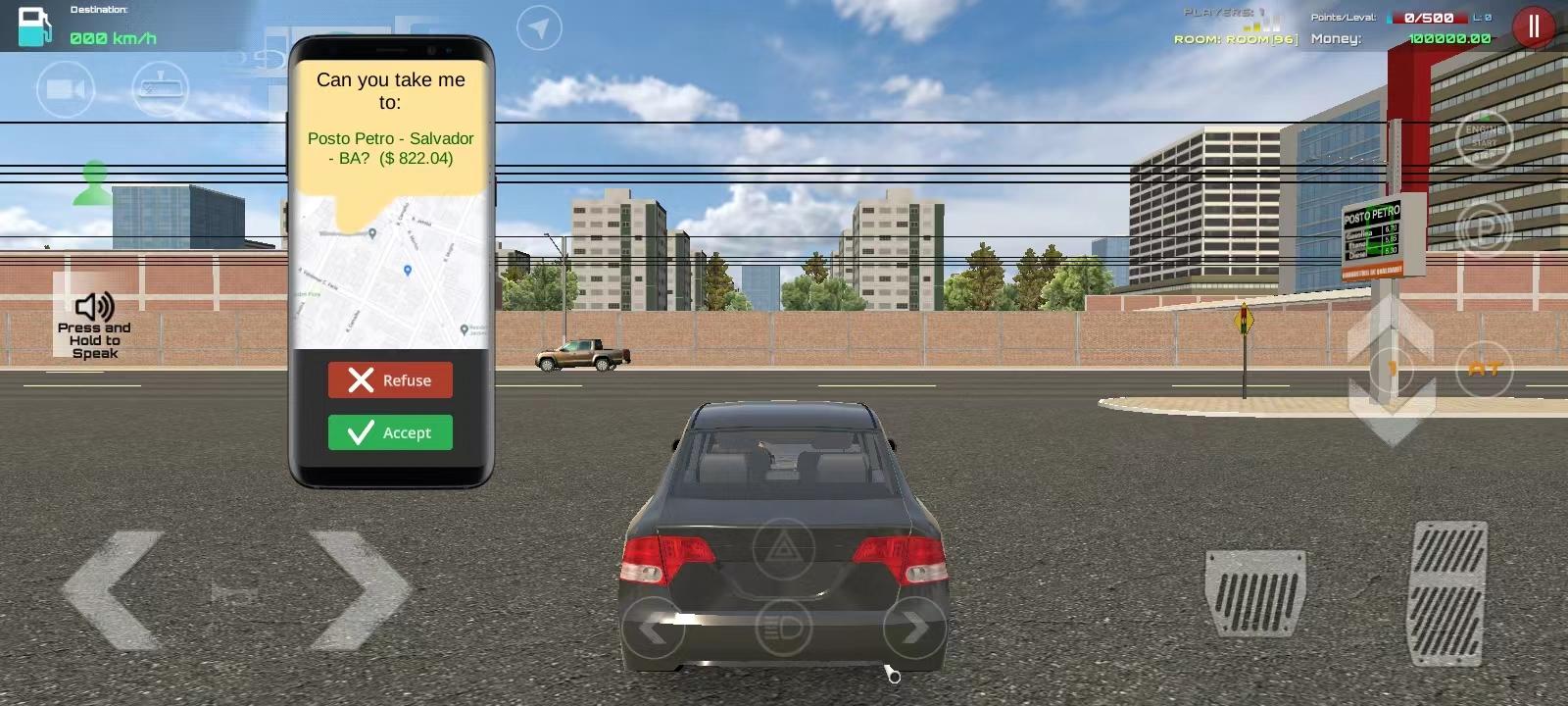 7、进入游戏后,会接到一个任务;点击【Accept】同意;左边的两个按钮是控制车辆的方向,右下方两个是刹车和油门;