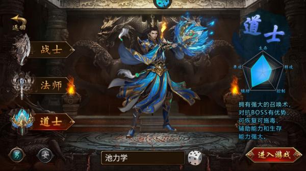 3、道士——拥有强大的召唤术,对抗boss有优势,可恢复可施毒,辅助能力和生存能力强大