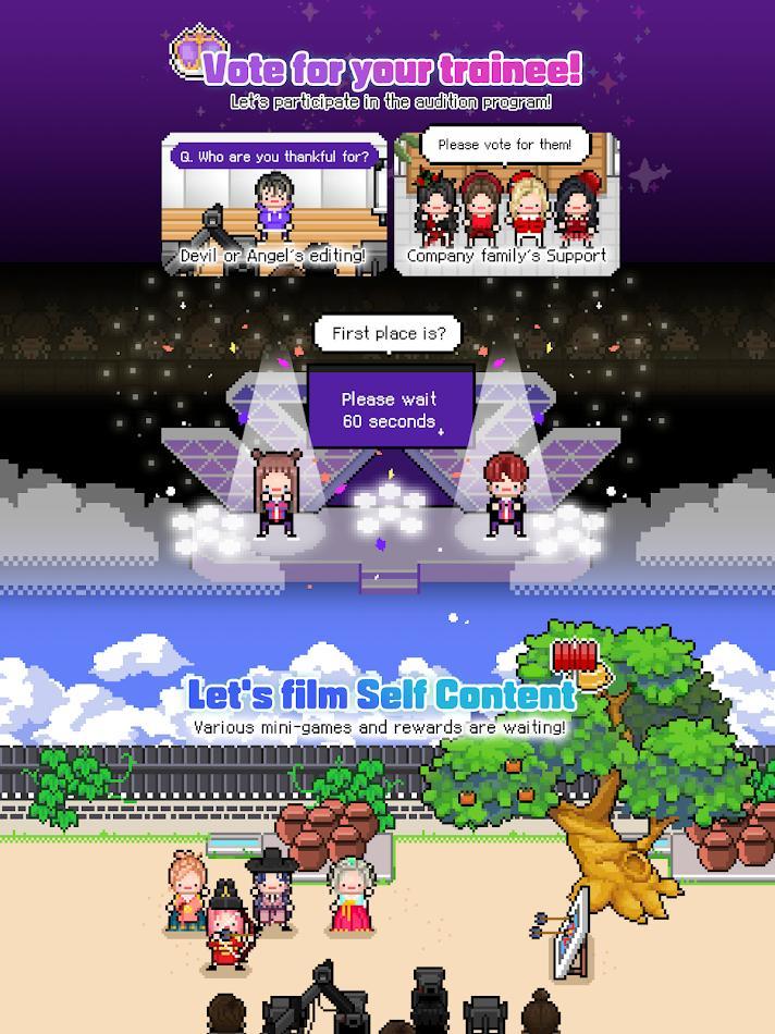 1.Q萌可爱的像素版游戏画风,精彩深厚的游戏故事剧情,海量的偶像角色等你收集;