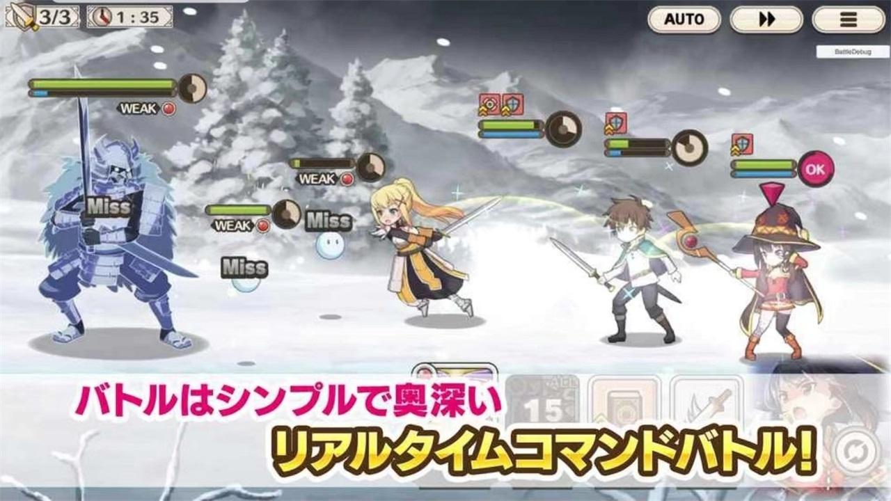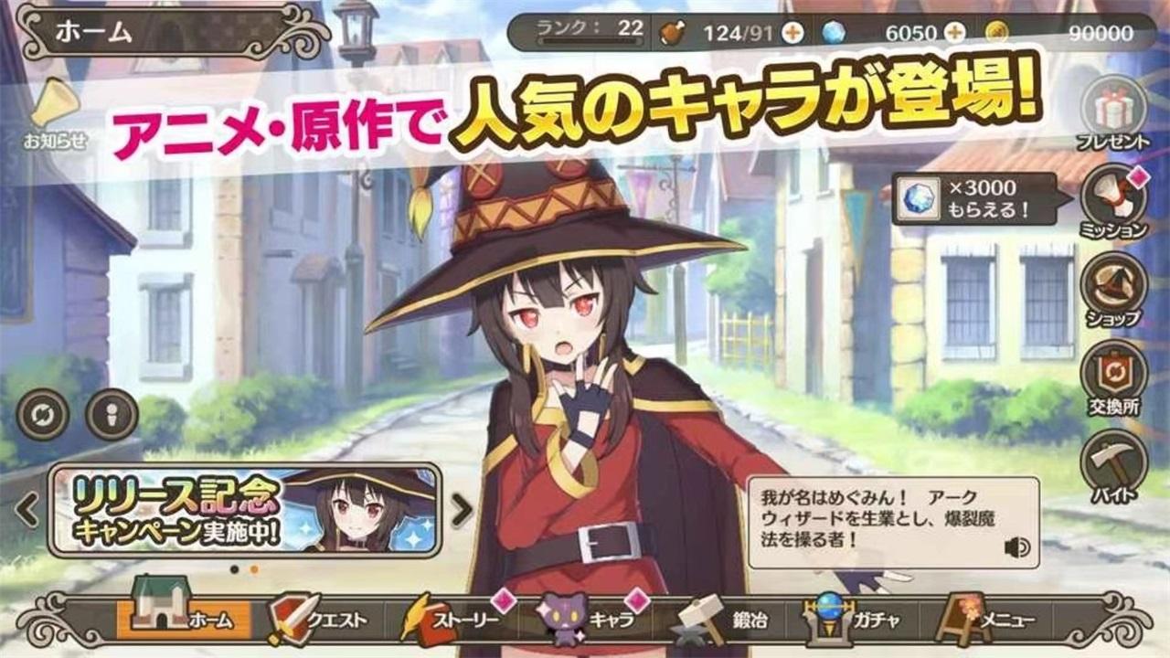 为美好的世界献上祝福日版是一款非常热门的二次元穿越异世界动漫的改编手游,游戏中讲述了男主意外穿越但是却利用规则便利将女神一起带入到了穿越后的世界中在这里的新手村中发生的一切啼笑皆非的日常故事。