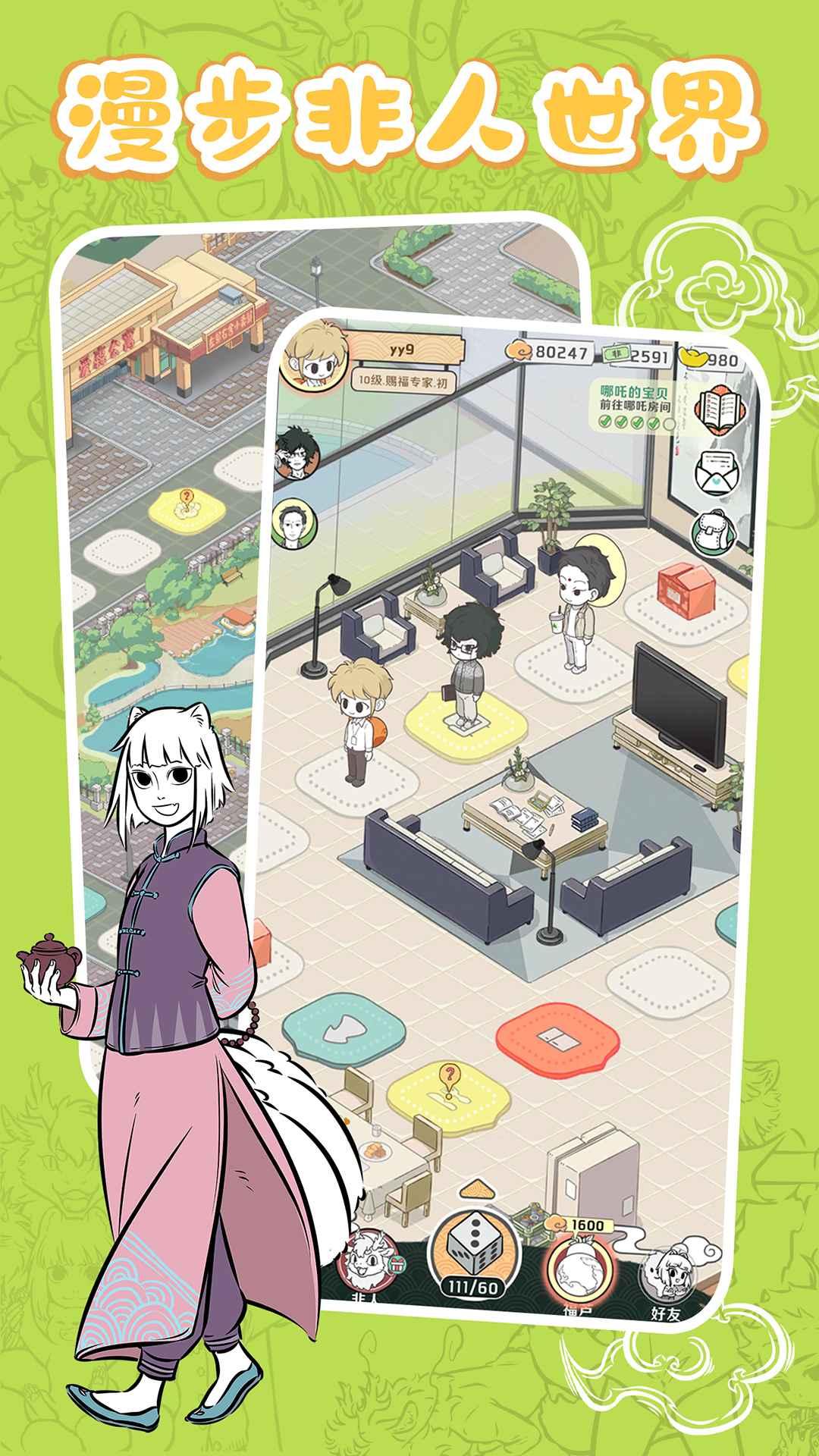 而游戏有一点小小的不同的改动,你将扮演一个穿越到“非人哉世界”的小福神,升职加薪摸鱼的过程中结识了主角们。不去一点点发生蝴蝶效应,改变着原来的故事……这也让看过漫画的人心中也多了几分期待。
