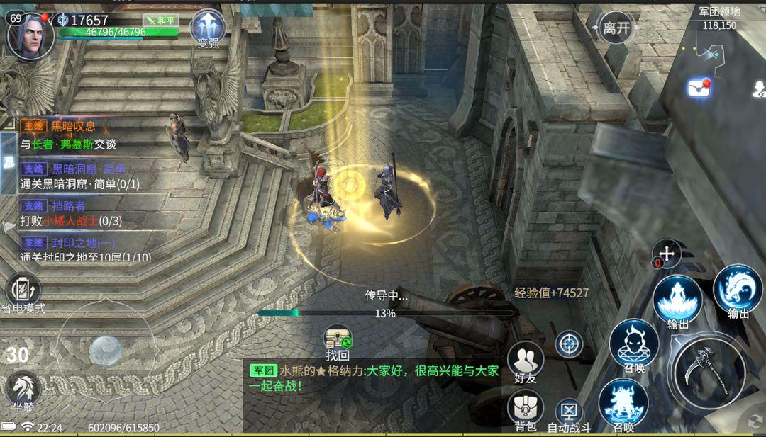各位觉醒者所在的军团等级到达1级后,可以向同一军团中与自己等级相关大于5级的同伴发出传导申请,申请通过后双方会被传送至军团领地进行传导。