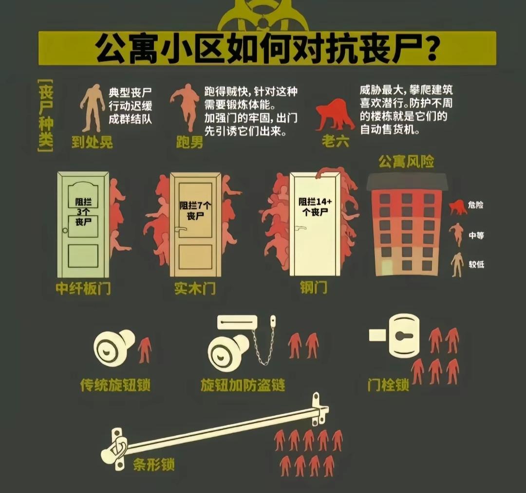 5.利用现有设施:利用现有的基础设施,如楼梯、床架、车辆等,来改善生存条件。例如,可以通过改造楼梯来阻止丧尸上楼,或者使用床架来储存水和食物。