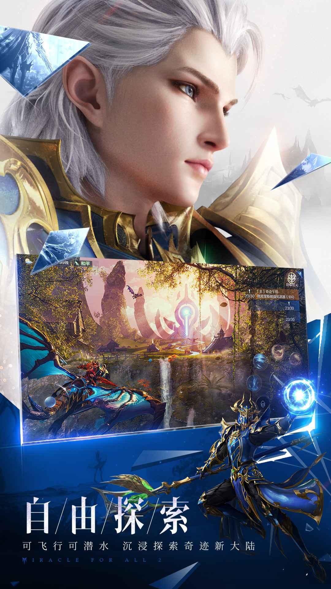 1.全民奇迹2是一款华丽魔幻的下一代MMO手机游戏;