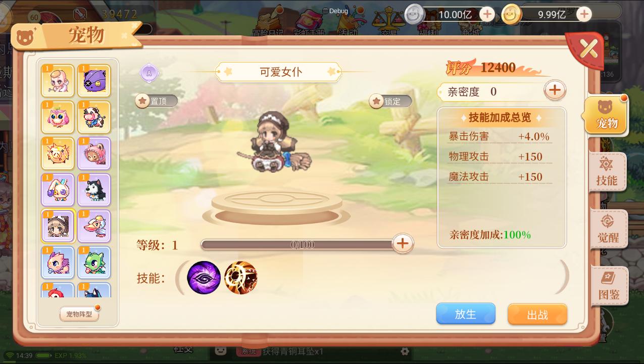 玩家完成系统指引后可以免费获得宠物龙猫,虽然该宠物是免费的,但是能提升一定比例的暴击率和攻击力,能在前期开荒期带来不错的加成,如果有条件的话也可以进行首充获取A级的宠物,提升比例要比龙猫高一倍。