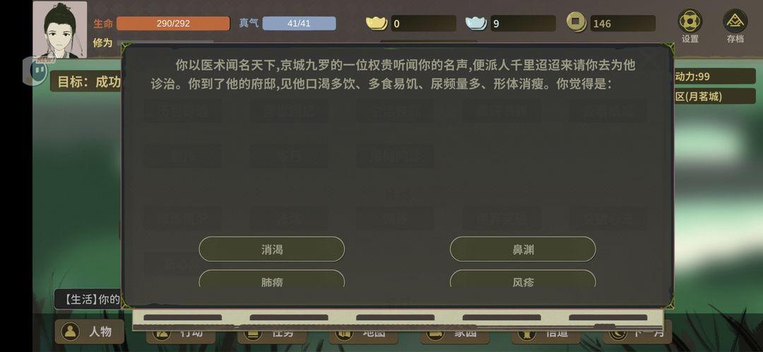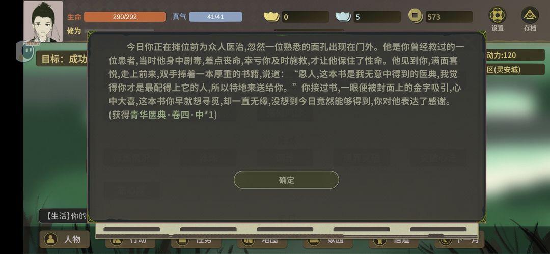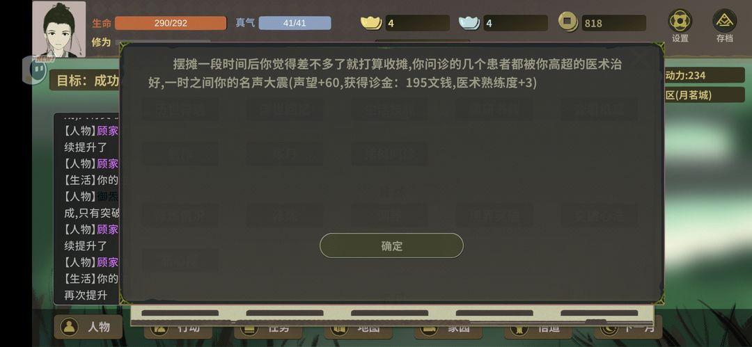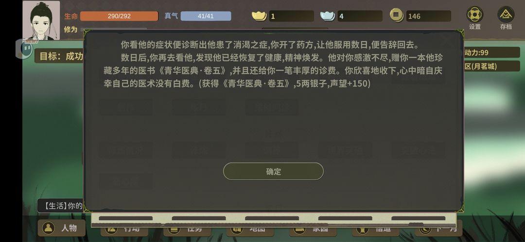 在城区的医馆中可以花费两年获取生活技能医术。其中医术的作用是能够解锁摆摊问诊这一行动,花费60点体力进行摆摊问诊可以获得声望、铜钱与医术的熟练度。