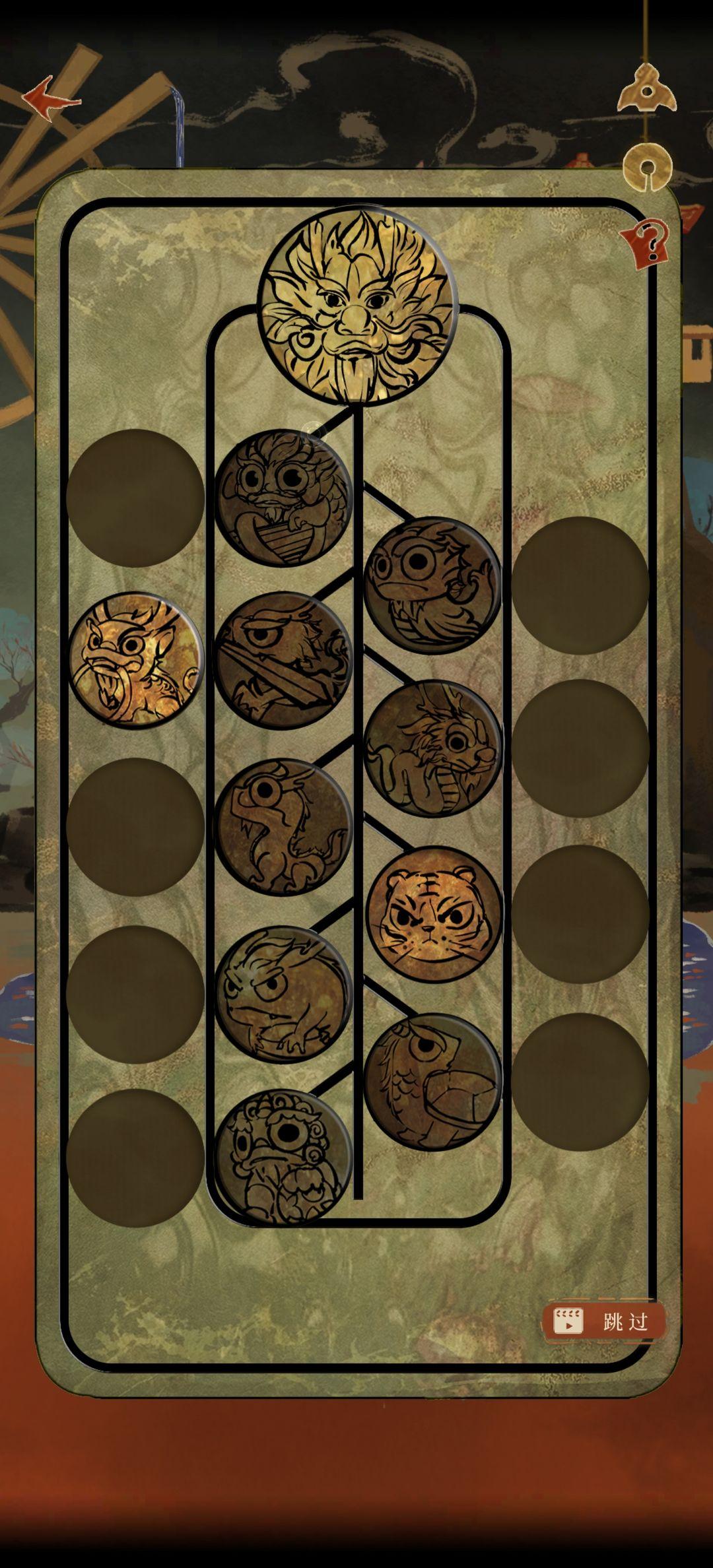 这里就是龙生九子,而龙的九子是不同动物为原型(如果好奇可以百度一下,我就不乱科普了)这个迷题就是将龙的九子和对应的原型匹配,操作就是拖动外侧的块块到里面,如果匹配会固定,如果不匹配会弹回去。大概观察一下特点应该可以找出来几个,其他分不太清的就穷举吧。放个完成图