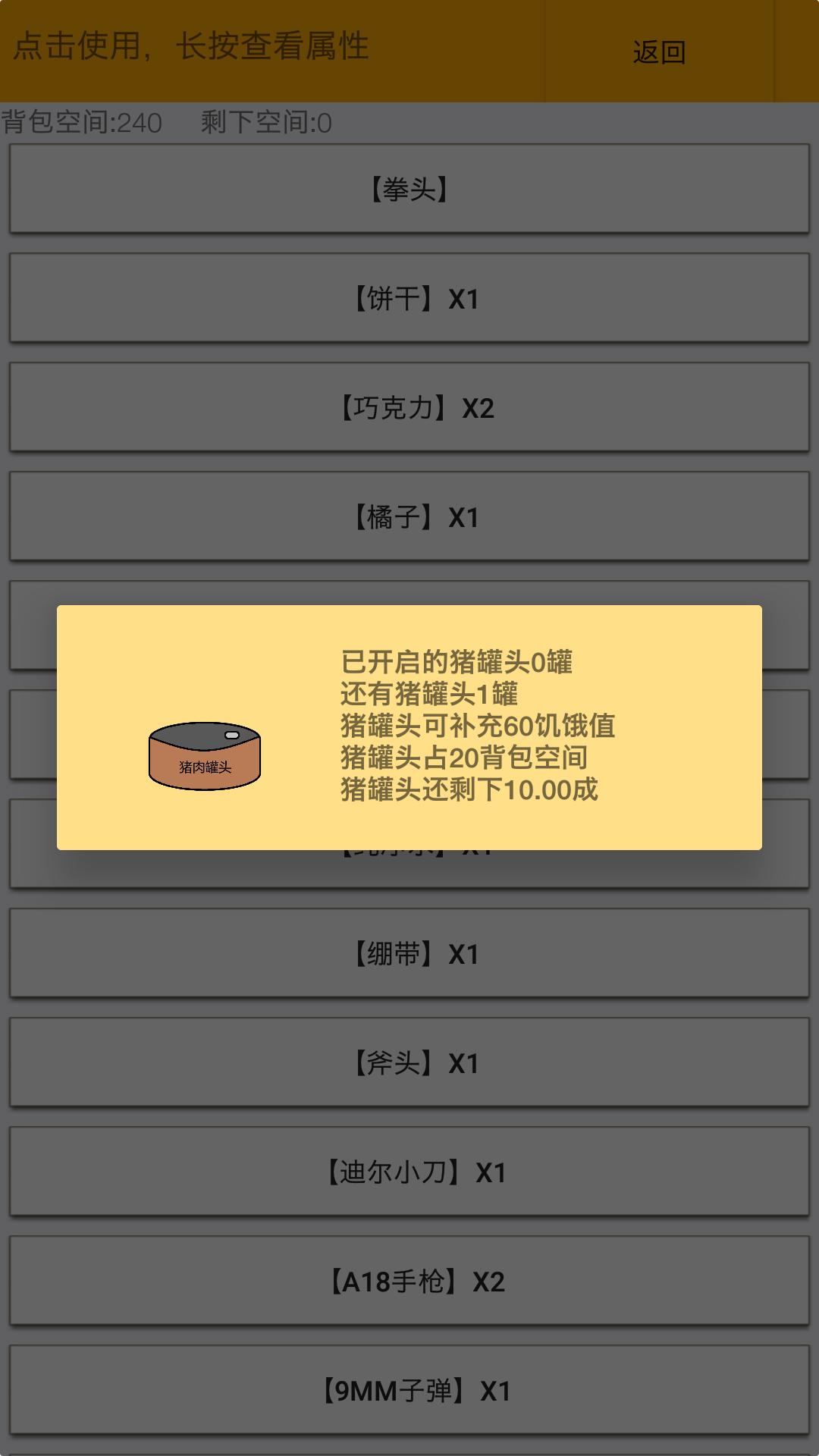 模拟现实一样,里面你的授粉就扮演一位警察,你可以购物可以点外卖食物来增加你的饥饿值,有意思的是口渴了你可以和厕所的水增加口渴值,哈哈这个设计在末日的世界我觉得也是很合理的,你还可以买衣服等生活用品和购买射箭手枪步枪还有子弹等武器来武装自己增加自己攻击值,当然你也有收货地址这样你才能收到你购买的东西。