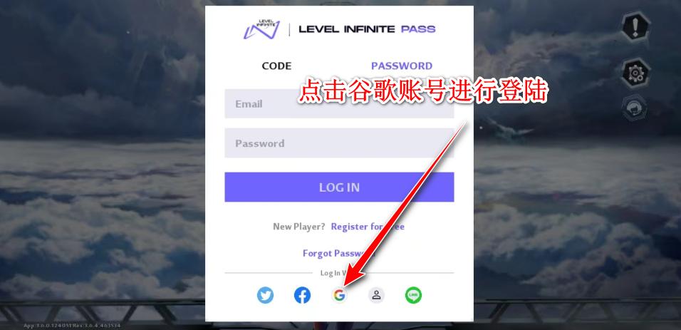 13.返回我们的游戏登陆界面点击谷歌账号进行登陆。