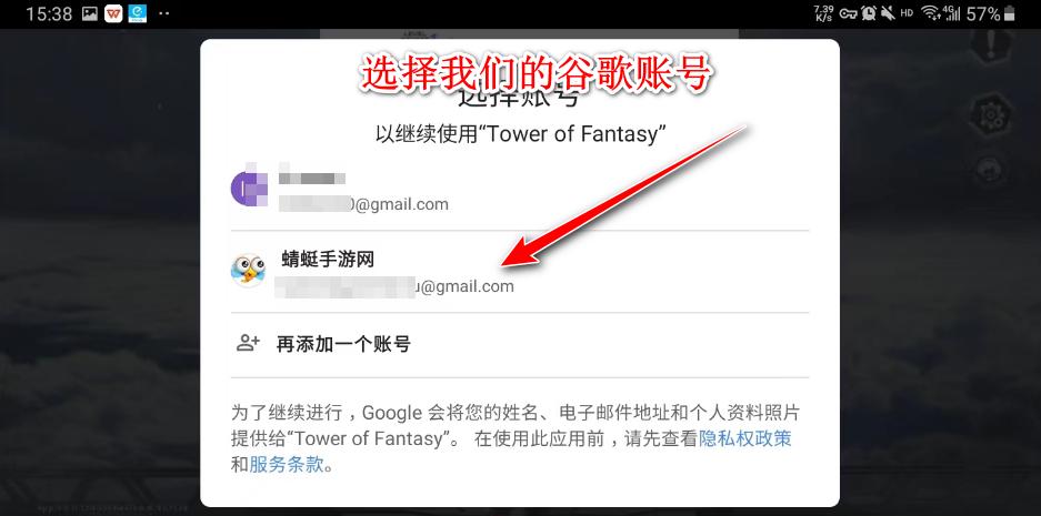 14.游戏会自动识别我们刚刚注册的谷歌账号,选择我们的谷歌账号。