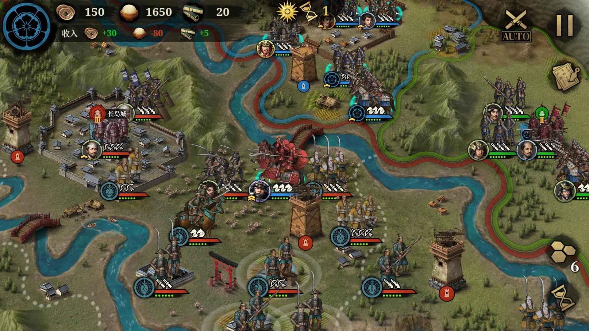 *步兵,骑兵,弓兵,火枪,器械,舰船……极其丰富的部队类别,让您运筹帷幄之中,决胜千里之外!更有忍者,剑豪,母衣众等拥有非凡战斗力的特殊部队,随时听候调遣。在战场上磨炼你的部队,他们将获得等级提升,战场的局势或许将因此而改变!