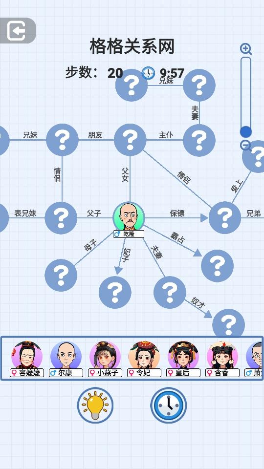 1.根据每一个关卡的提示将人物头像移动到他们对应的关系网中