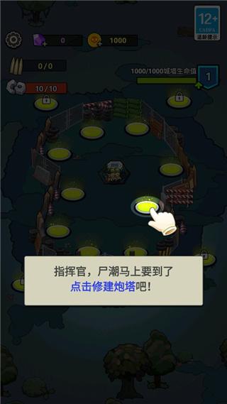 1、进入游戏根据提示点击修建炮塔;