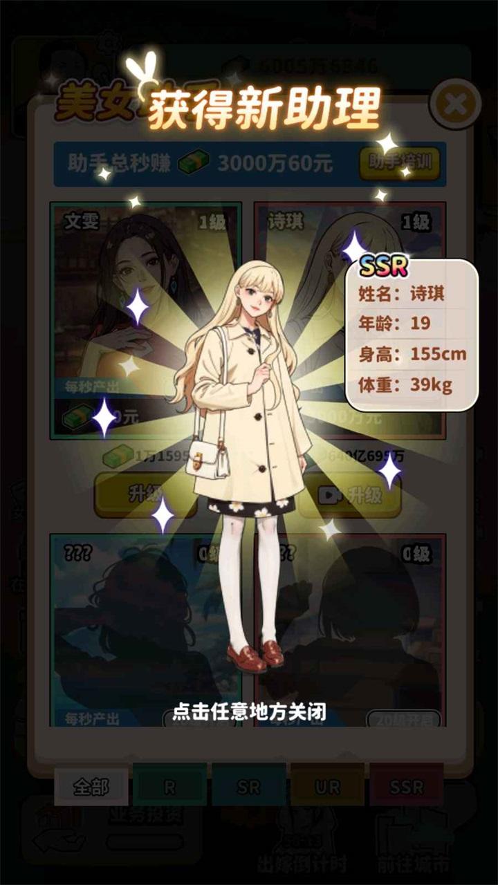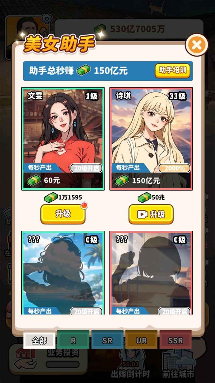 2.向右滑动主页点击右侧的自动赚钱模式,然后将招聘的助理上阵后就会飞快的赚钱。